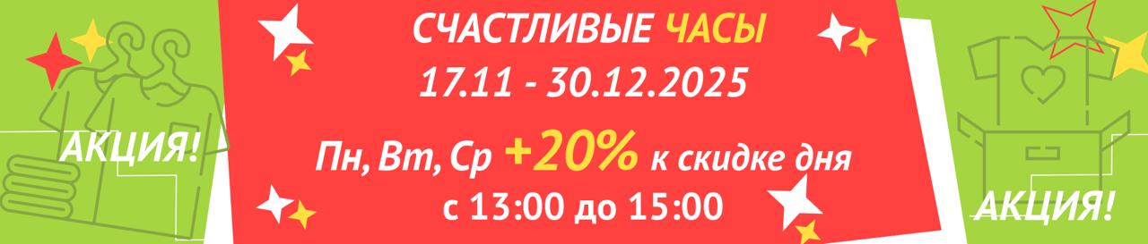 Для покупателей разработан удобный календарь скидок. Выгоднее всего пополнять свой гардероб по будням. Однако, кроме постоянно действующих спецпредложений, секонд-хенд «ВО!ВА!» регулярно проводит акции, чтобы без обновок не остался ни один член семьи, а покупки не проделали брешь в бюджете.